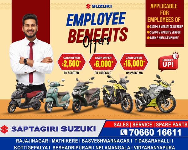 SAPTAGIRI AUTO PRIVATE LIMITEDSuzuki showroom in Bangalore, one of the leading businesses in Motorcycle, Scooters Authorized dealers. Established in the year 2006, Saptagiri Suzuki is a Top Player in Motorcycle Dealer, well known establishment acts as a one-stop-destination servicing customers both local and other parts of Banglore.