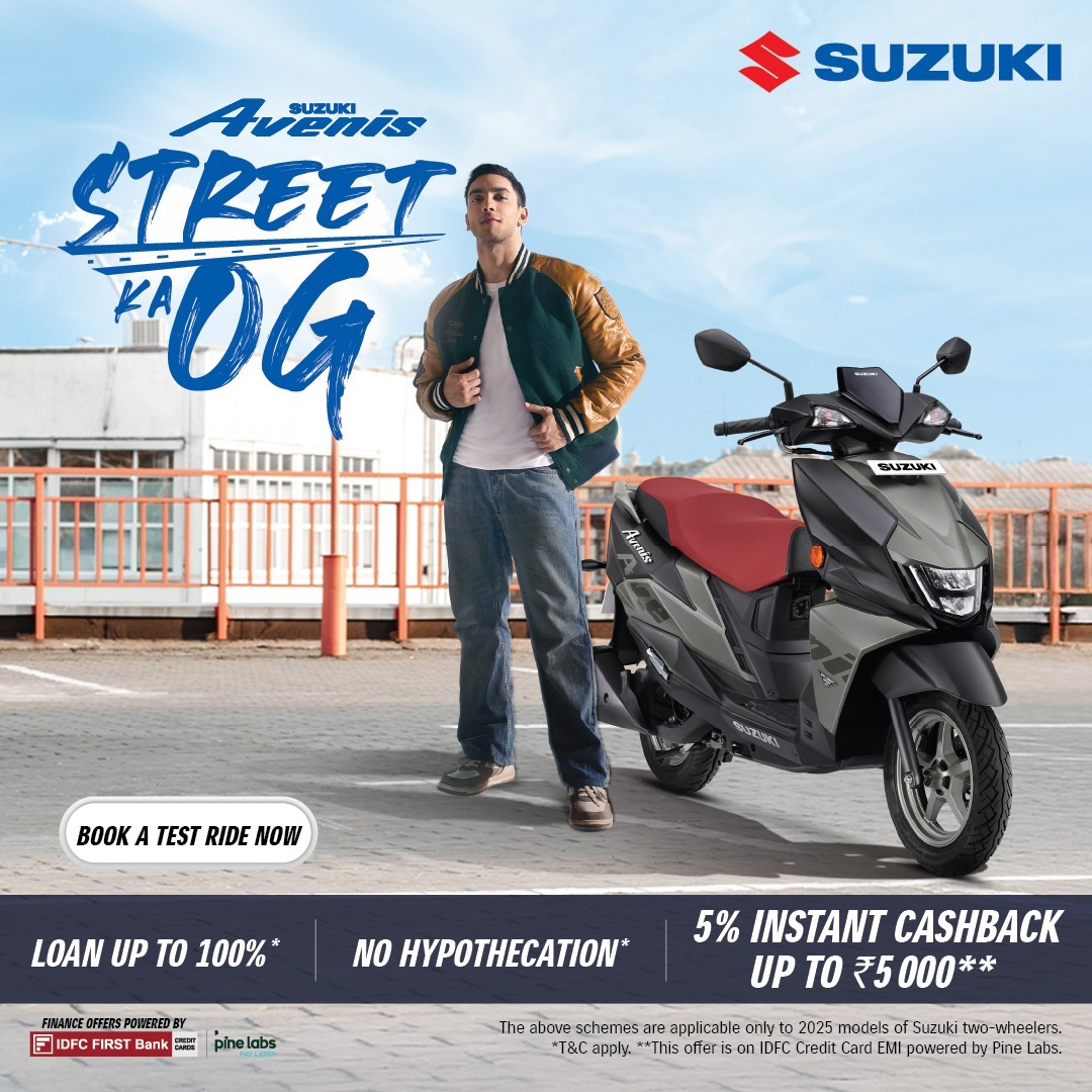The sporty Avenis is here to take the lead—and now, it’s easier than ever to own it. 1. Loan up to 100% 2. No Hypothecation 3. 5% Instant Cashback up to ₹5, 000 Ready to ride with style and savings? Book yours now.